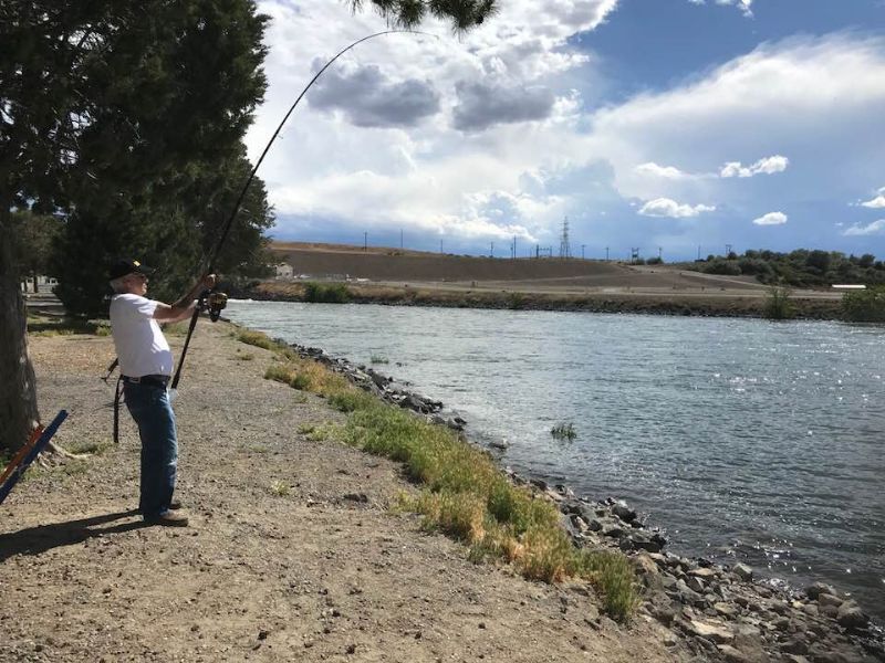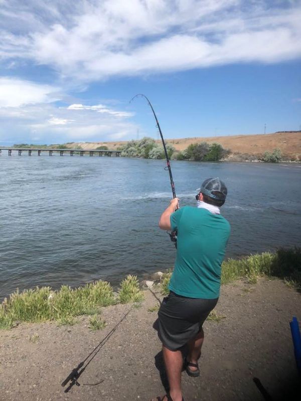 We fished right between the spillway and the power turbines of the CJ Strike Dam. Right outside of a little town in the desert called Grand View It's really close to the Air Force Base, I get the added pleasure of watching the different types of Jets do their fly byes while i'm fishing. I parked my trailer about 25 yards from the bank . It's like a little campground there, trailer and tent sites, super clean restrooms, but no trailer hookups. Great place to fish. right on the Snake River.