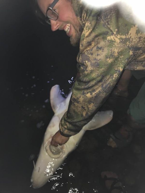 We all had a ball! A solid week of Fishing and Family interaction. The Sturgeon were not huge, but ran  six feet, and the largest was seven feet seven inches. About 200 pounds (according to a chart I have) The guy is normal size, the Rod is a heavy action ugly stick twelve feet long, the spinning reel is a Pen spinfisher V 2500, loaded wit 80lb braid. we used 8/0 barbless circle hooks, and 8-10 ounce sinkers to hold in the current. We all had the same outfits.