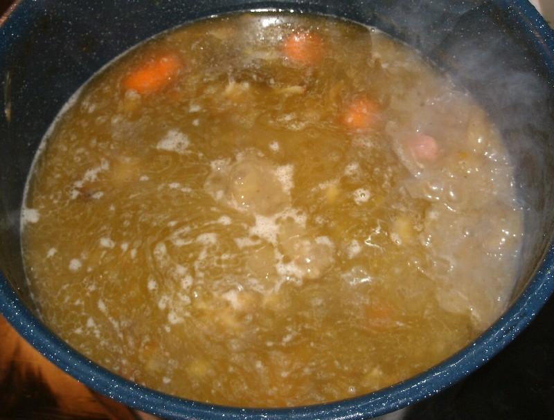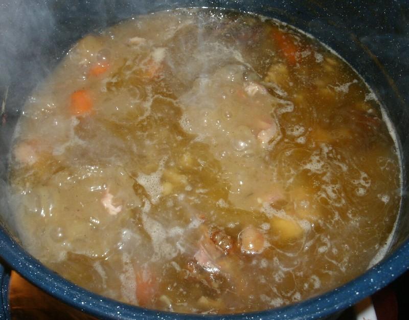 All winter long there would be a pot of soup or stew simmering on the wood stove, it would evolve from beef to lamb to pig to bird.  You would just grab your bowl and go find out what's in the pot, it could be beef and barley, chicken or turkey noddle soup, mutton stew, deer or elk stew, gumbo, minestrone, ham & beans or if you were unlucky split pea.