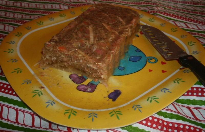 The celery and shredded carrots are going to give you not only a great taaste but a very pretty finished loaf. You are going to win praises on this alone, and once it's tasted your head-cheese making future is gonna be locked in!