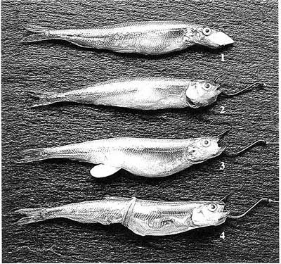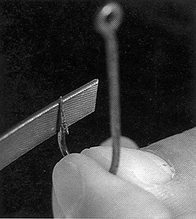 ---------------------------- Northern Pike, and occa-sionally walleyes, will take dead smelt lying off the bot-tom, but these baits are more effective when floated up a foot or two. Because these fish can be found in deep water, using a bobber to suspend the bait is not always practical. Here’s a way to float dead bait just off the bottom, where it is visible and also appears to be wounded and barely alive. Big pike would have a hard time resisting this presenta-tion: ![]() Stuff a (1) Styrofoam packing peanut inside the mouth of the bait and (2) run the hook through both lips to keep the mouth shut. If more floatation is needed to make the bait float off the bottom, (3) cut a small slit in the belly and stuff another peanut or two into the abdomen. (4) Slip a rubber band over the fish or tie mono around the bait to keep the peanut in the body. If the bait is small, use pieces of a peanut in place of a whole one. Fish the bait about two feet behind your sinker. Edited by TasunkaWitko |