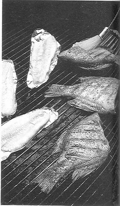 ----------------------- When you combine the fresh air, the natural scenery and the tang of woodsmoke, nothing comes close to cooking outdoors over an open fire. Open-fire campfire cooking is similar to cooking over charcoal or natural gas, but there are a few differences and things to remember. Build a fire using dry, non-resinous hardwoods, preferably logs about 3-4 inches in diameter and some smaller kindling. If it has been raining, you may have to carry some newspaper or dry tinder to get the fire started. Stack the wood in a log cabin- or tipi-style over the tinder. When the fire has burned down to a bed of hot coals, place a grate over coals on rocks or logs bordering the fire. Feed the fire with small twigs as needed to maintain even heat. The usual way to cook over a fire is simply to set a frying pan on the grate. But you can also wrap food in a foil packet, along with vegetables, if desired, and set the packet directly on the coals. One of the biggest problems when cooking with foil over an open fire is telling when the food is done, because cooking time varies with the type of wood, wind and outside temperature. Open the foil and check the food for doneness. Meat should be done to your liking, fish should flake easily and vegetables should be tender. If the food is not done, reseal the package and put it back on the fire. When you’re done cooking, be sure to extinguish your fire completely. How To Cook With A Frying Pan • Test the coals by blowing on them; when they glow bright red, the fire is ready. Don’t attempt to cook until the flames disappear. • Place rocks around the fire to hold the grate 4-8 inches above the coals. Lower the height of the grate for more heat or raise it for less heat. • Add 2 or 3 Tablespoons of cooking oil to the frying pan and heat for 1-2 minutes. Use long-handled tongs or fork to add the fish. How To Cook With Aluminum Foil • Double-wrap fish by first criss-crossing two sheets of heavy-duty aluminum foil. Wrap fish in top sheet as shown; repeat with bottom sheet. • Set the packet in the middle of coals or on grate. Cooking time will vary depending on weather, size of package and intensity of heat. • Cook for half the recommended time. Using long-handled tongs, turn package over and cook for remaining time. Open package and test for doneness. Tips For Campfire Cooking • Hold your hand 6-8 inches above grate to judge heat. If you can hold it there 2-4 seconds, the heat is high; 5-7 seconds, the heat is medium; 8-10 seconds, the heat is low. • Premix flour or desired coating with dried herbs and other seasonings in a resealable plastic bag. To coat pieces of fish or meat, add them to the bag, reseal and shake. • Keep spice mixtures needed for recipes in a 35mm film canister or similar small container. This way, you’ll be sure to have the proper blend and you won’t have to carry several bottles of spices. Carry a small cooler for perishable foods and supplies such as cooking oil, matches, newspaper for tinder, seasonings and utensils. This keeps everything in one place for easy access. Water frozen in plastic bottles keeps food cool. Edited by TasunkaWitko |