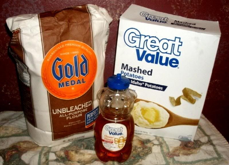 after talking to john (RIVET), there was a slight variation of the original method posted above that i wanted to try. john mentioned using potato flakes in the starter , which would do a good job of reproducing the "potato water" that many starters used, and would also give it a real, old-time sourdough taste, evoking images of old san francisco and alaska in their gold-mining heydays. with that in mind, i decided to give it a shot. also, i will add a dollop of honey to give the yeasties something to feed on.
