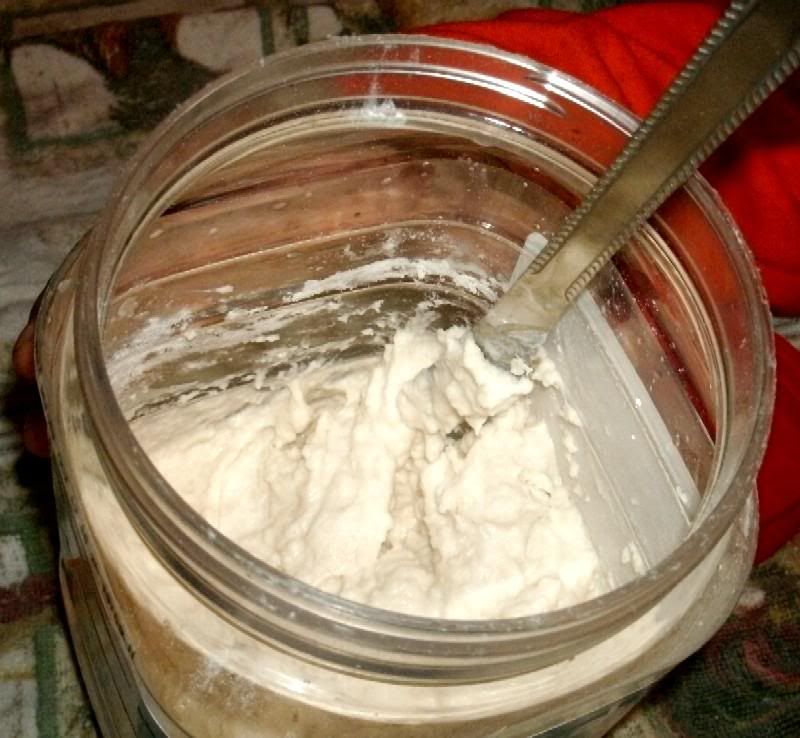 after this, i put the container in the turned-off oven with the light on overnight. here;s what it looked like this morning: