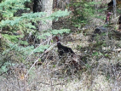 I was cleaning up some blow downs from tue. wind, at back of place.  I put down chainsaw for a minute, because I thought I heard something, I was surrounded.  Most were gone by time I went to house to get camera, must have been thirty or more, maybe chainsaw's a good turkey call.