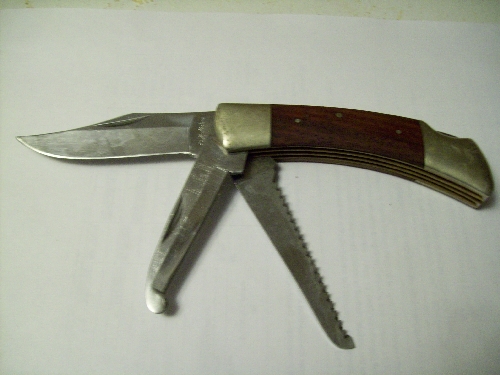 I replaced my buck folder, with a cabela's tri-blade folder, same size as buck, about 20yrs ago. It's blade is good for gutting six or seven deer before needing resharpening, it's gut blade works well for splitting hide for gutting and skinning, saw is just long enough for quartering an elk, although it is less than ideal for the task. I don't know if they still make them, it'a a copy of a puma knife my dad's had for 40+ yrs.
