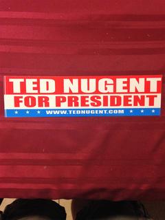 By the way, Ted gave me that bumper sticker himself. He gave it to me when I met him backstage at a concert in Sheridan Wyoming in 2014. I still have a few of them.