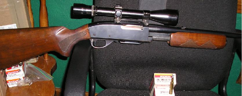 A Remington 760 ADL Gamemaster?  Can't pick up exactly what's going on with the scope/mount situation in the pics.  But it looks as though the rear base connects to the turret.