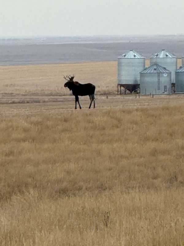 Highlight of the trip, was this young bull moose near Dagmar, MT...something that doesn't happen much!