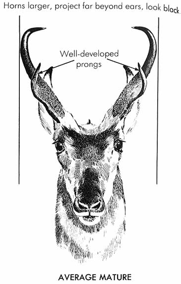[T]he horns of buck antelope are very easy to classify. Those of an immature buck do not give the impression of blackness. If the hunter gets a good look at them, they appear rounded, unfinished. The prong is not prominent or well-developed.