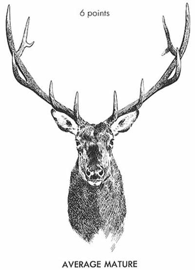 When a bull is a long yearling, he is a spike. As a long two-year-old he has five points to a side. The next year he grows his first pair of six-point antlers. The normal elk head is always a six-pointer. The antlers grow larger until the bull is seven or eight years old, then they generally start to deteriorate. They grow smaller, but often have more points. Probably the finest, most spectacular and highest-scoring heads come from seven- and eight-year-old bulls…. Bulls with more than six points are actually quite rare, and bulls with deformed and freak heads are rarer still.