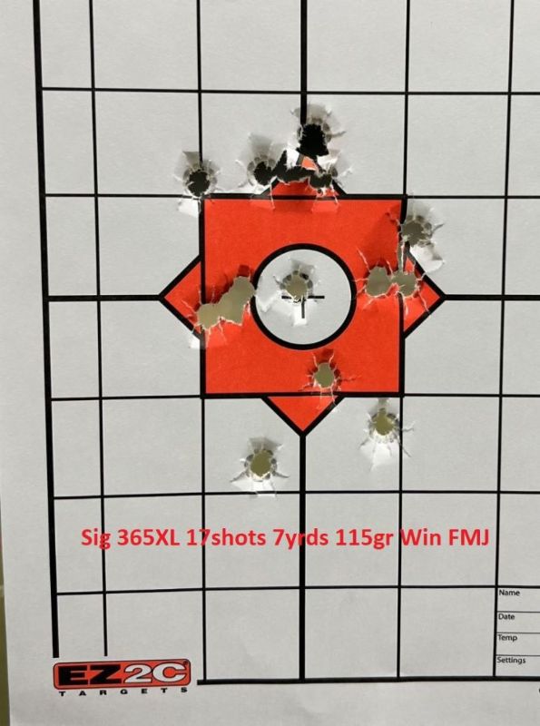 Sig 365XL I bought this used and it was some of the best money I've spent. It came with one 14rd mag and I bought 2 extended 17rd mags. In a single stack sub-compact, that packs a punch. It is only slightly bigger than my Glock 43 with 11more rounds. Again, everything shot very good, it shoots my HP reloads very well. Highly recommended for a CCW